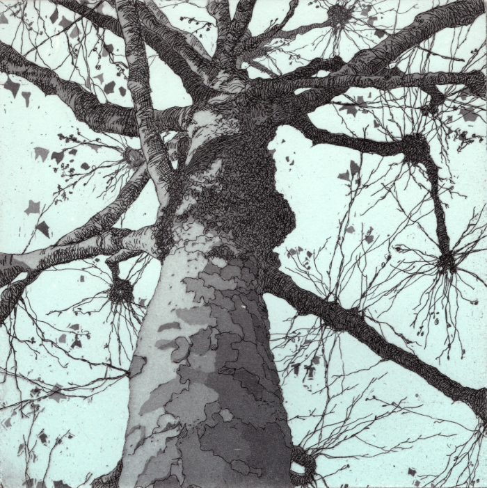 Image size 15 x 15cm, paper size 27 x 27.5cm. These are 2 trial versions of the new London Plane etching currently on sale at £135 in the etching shop.
