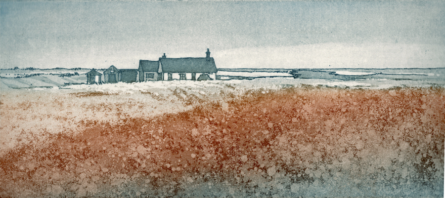 This etching is printed on off white Hanemulhe etching paper using coloured inks.